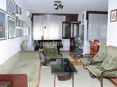 Belgrade Apartments accommodation rental 5 cover an area of 75m² and have two bedrooms. One bedroom has a double bed, the other has a double and a single bed. The living room has a piano, cable TV and the Internet. The dining room can accommodate 6 persons. The kitchen is fully equipped. The bathroom includes a toilet, washing machine and an extra toilet. There are also two covered balconies.